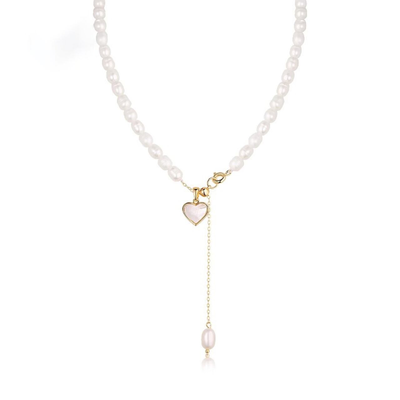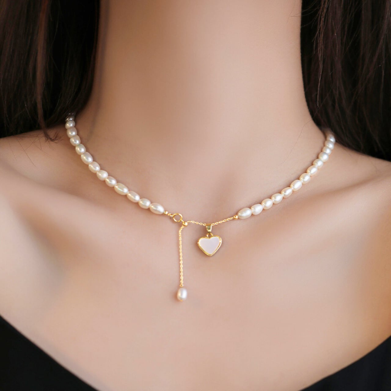 華奢なパールに、ゴールドのハートチャームがきらりと輝くチョーカーネックレス♡