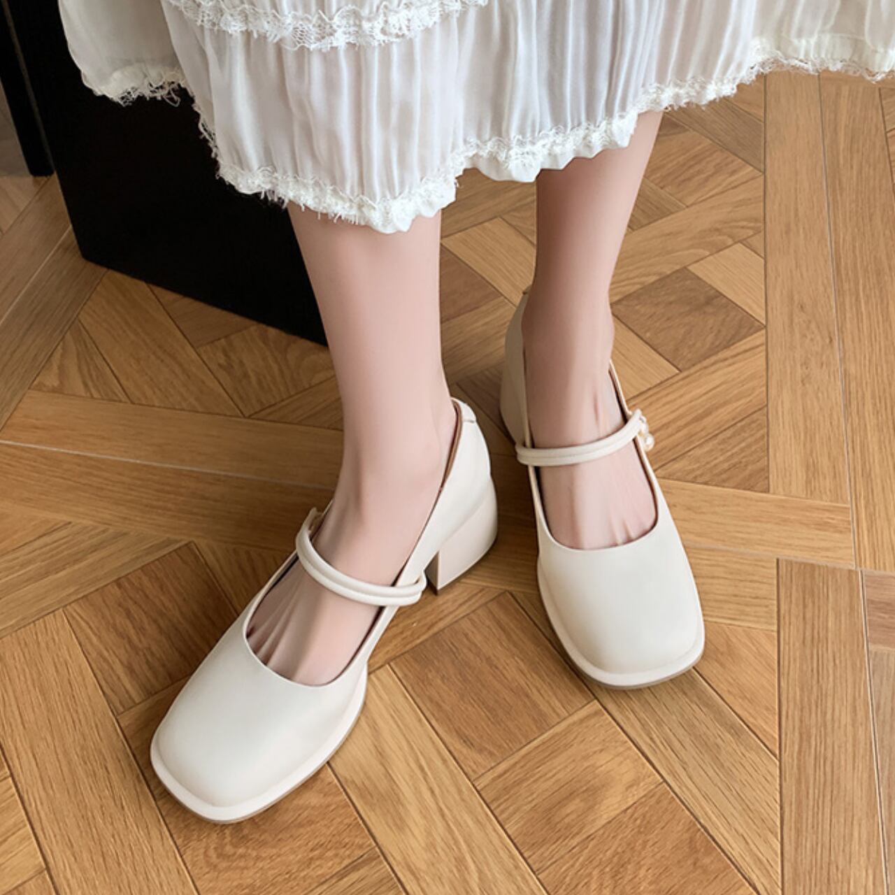 スクエアトゥ×ミドルヒールで、上品さと歩きやすさのバランスも◎