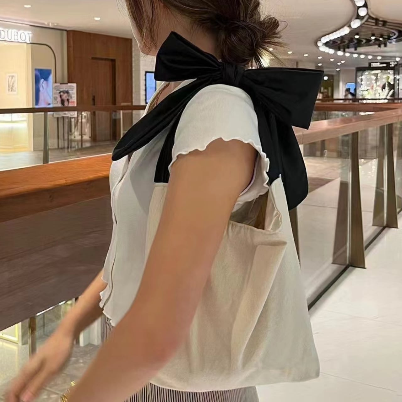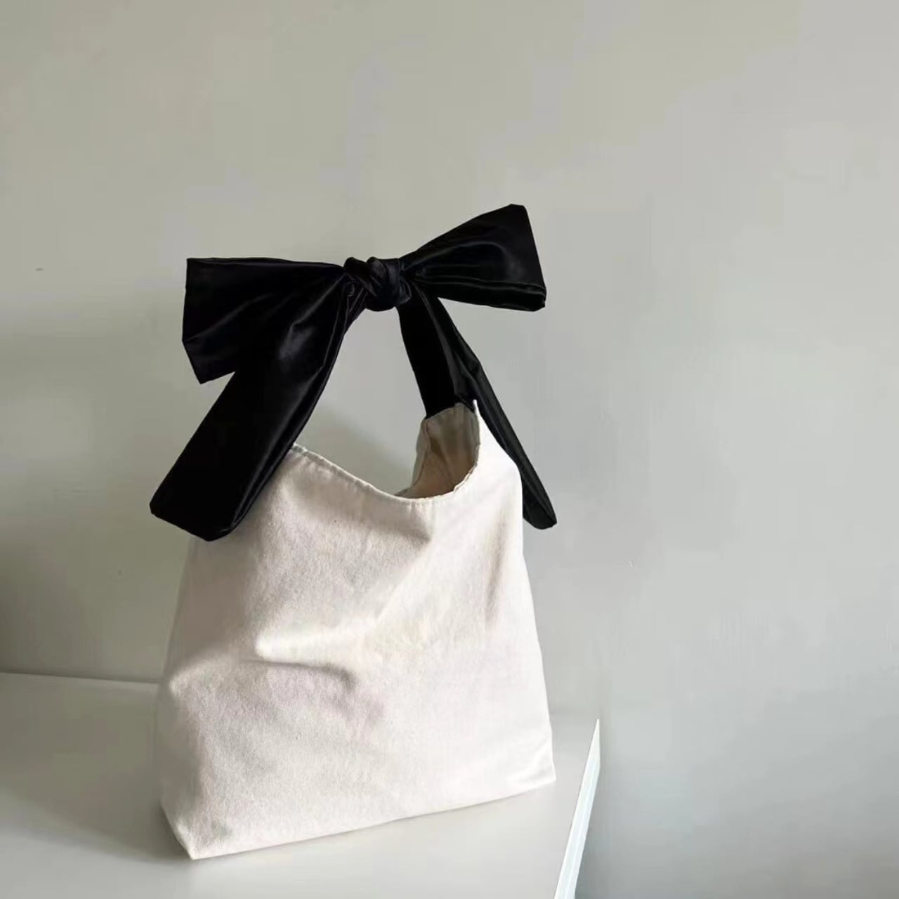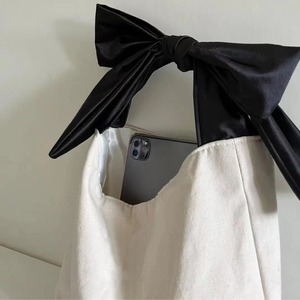 ふんわり柔らかなキャンバス地に、存在感のあるベロアリボンをあしらったトートバッグ♡