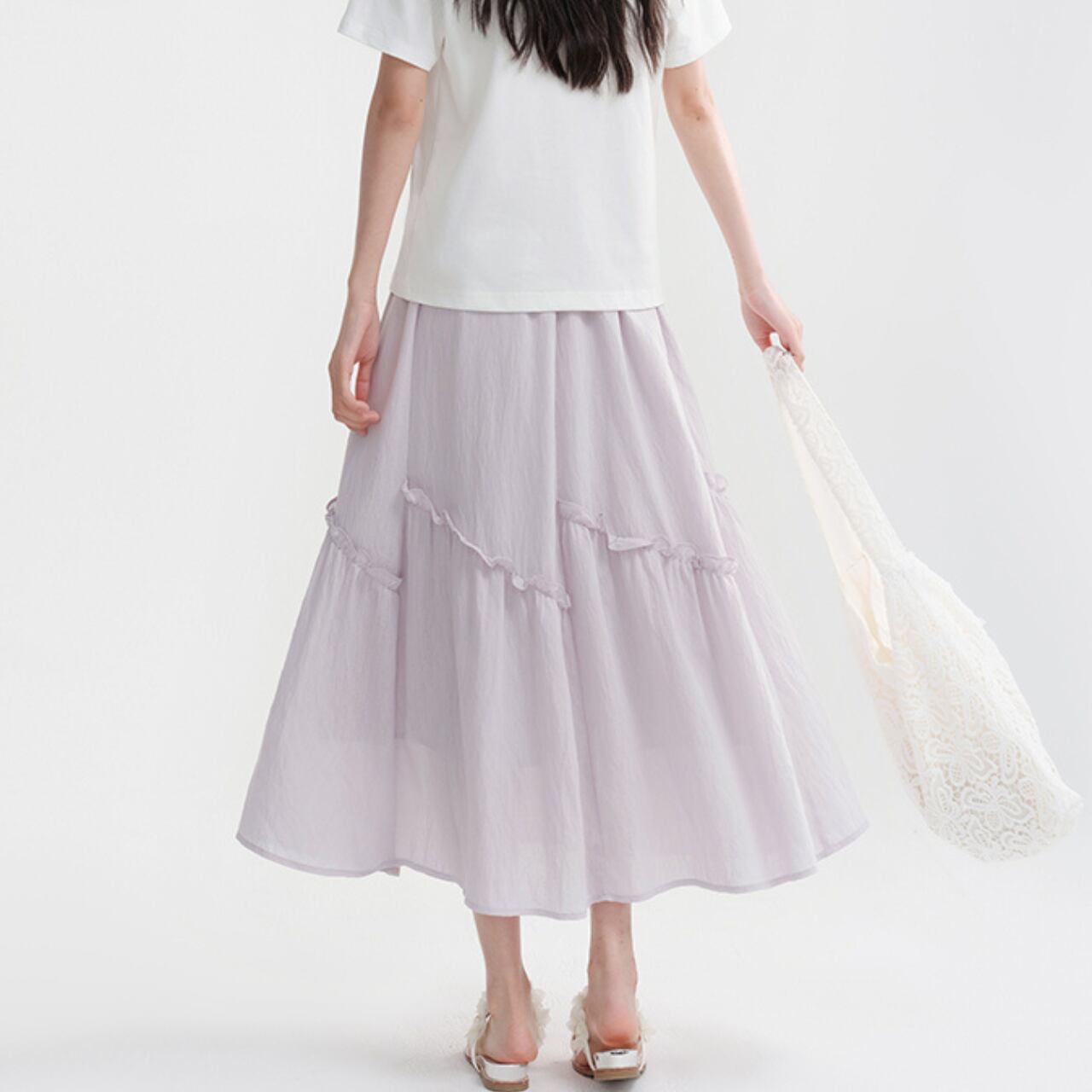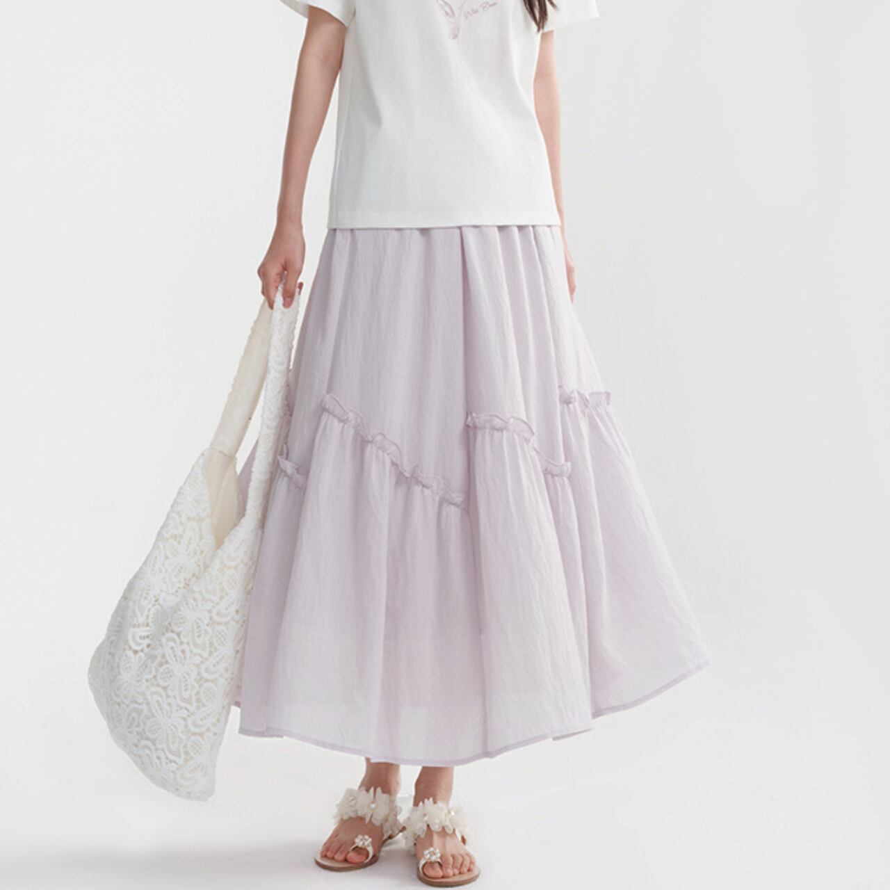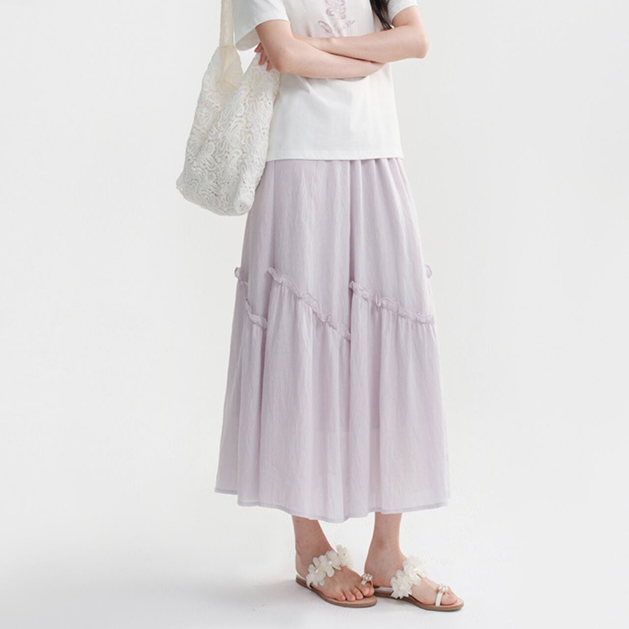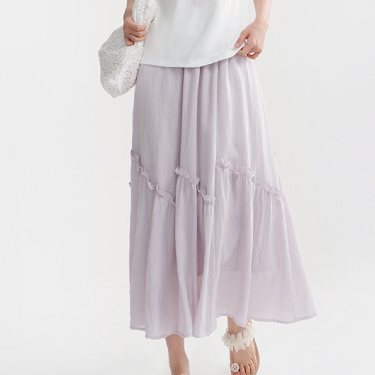 ふんわりと揺れるティアードデザインが魅力のロングスカート。