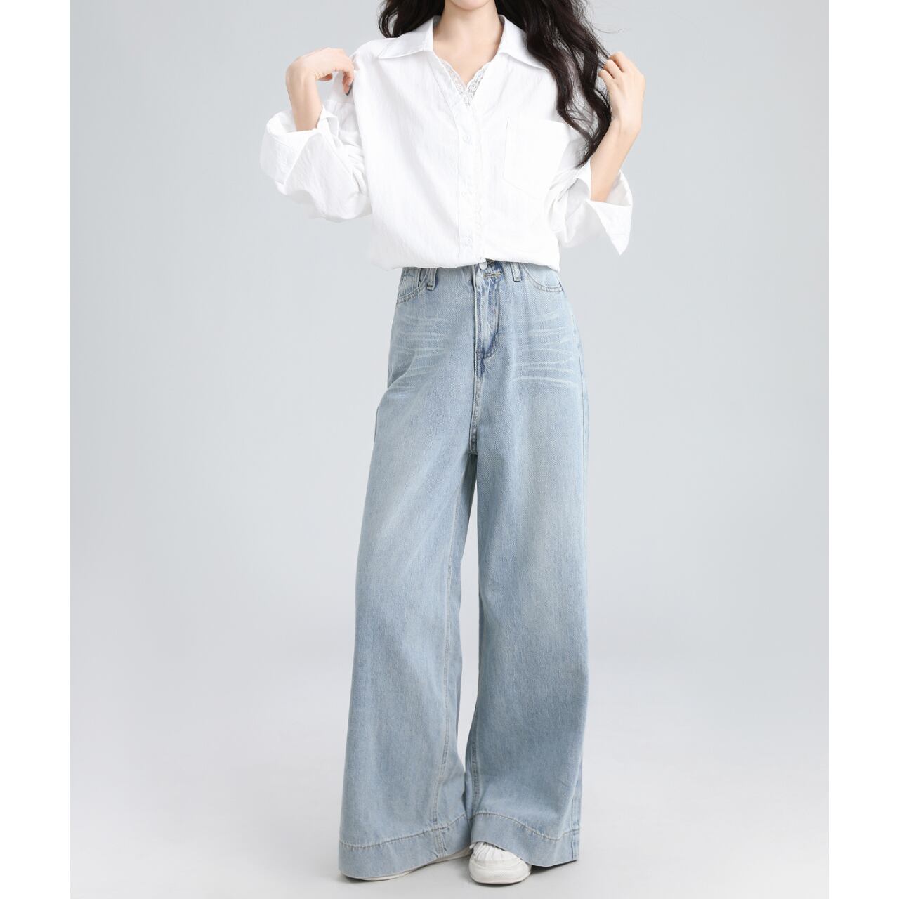 ゆったりシルエットのホワイトシャツに、フロント部分のレーストリムがさりげない甘さを添える一枚。
