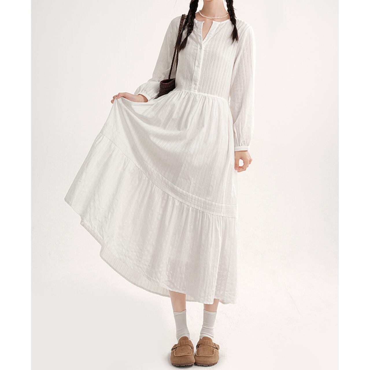 やわらかなコットン素材で仕立てた、軽やかなロングワンピース。