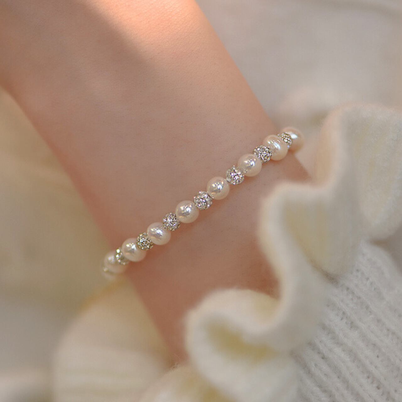 小粒パールとクリスタル風ストーンを組み合わせた華やかなブレスレット。
