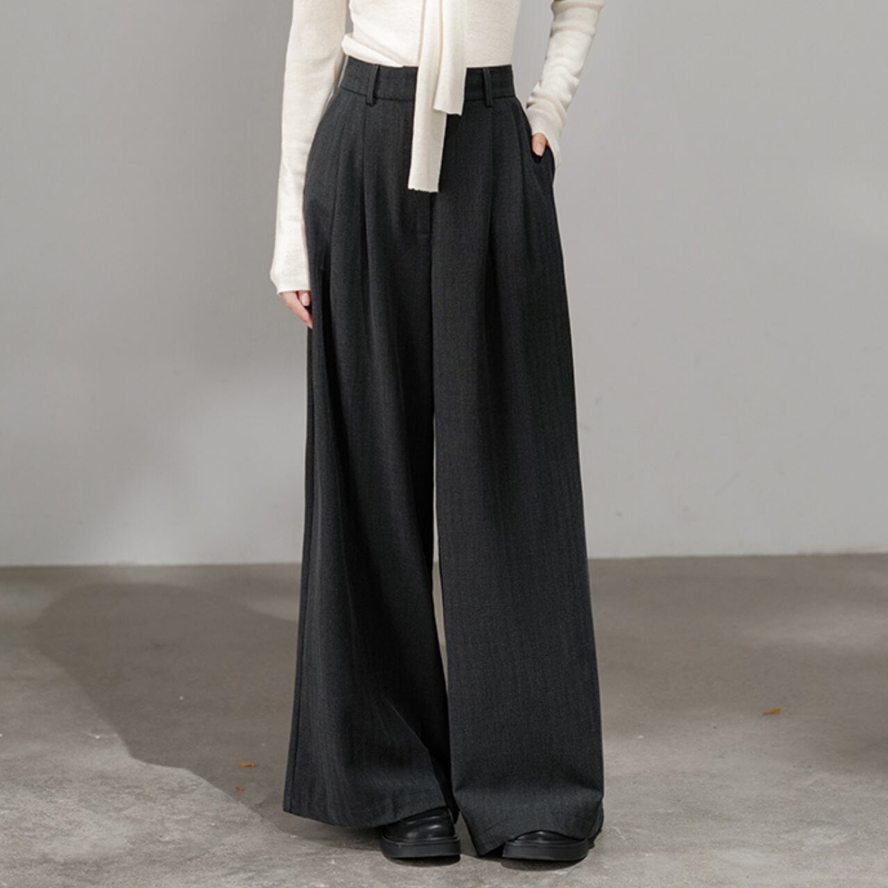 すとんと落ちるシルエットが美しいワイドレッグパンツ。