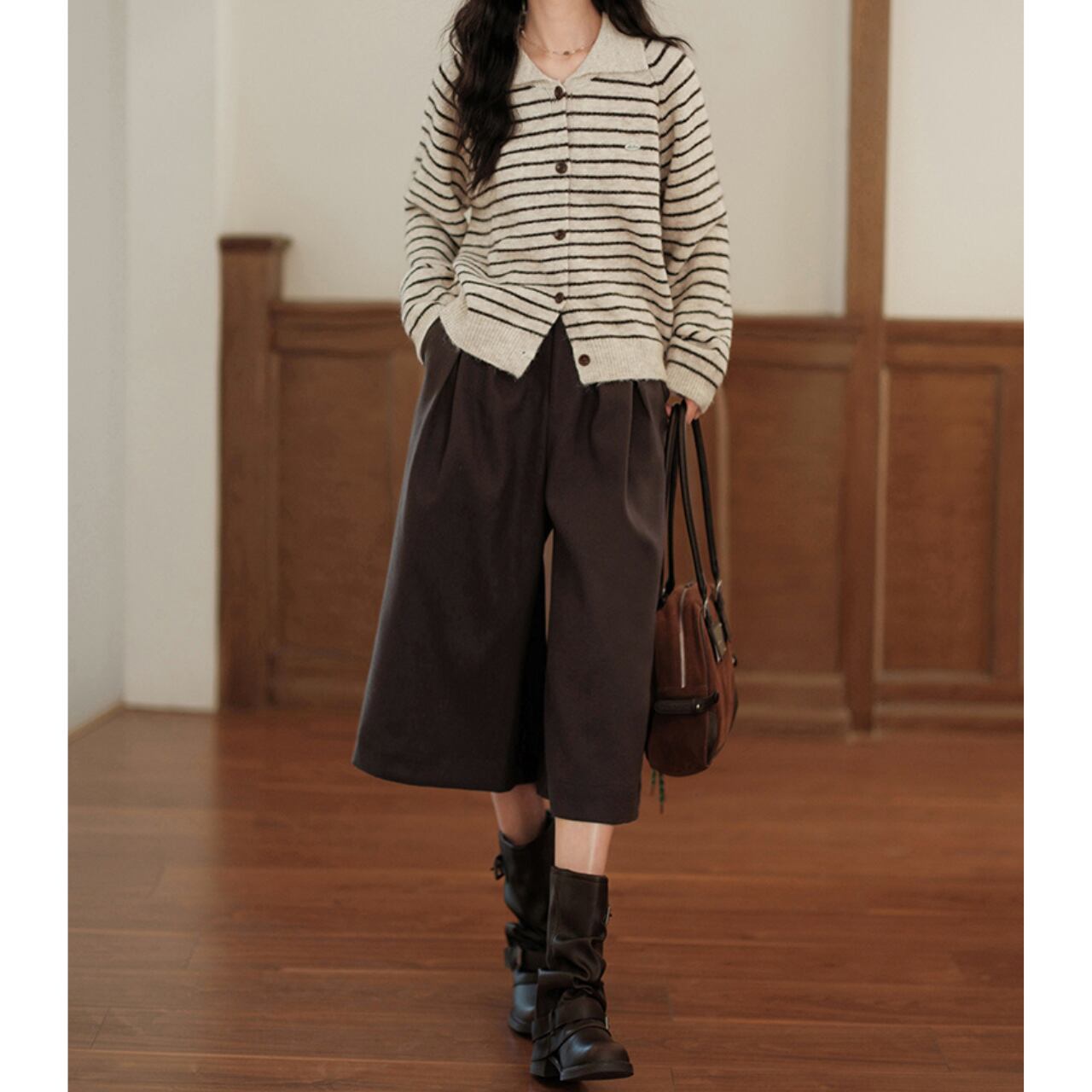 柔らかな風合いのボーダーニットカーディガン。ゆったりとしたシルエットとナチュラルな配色が、大人カジュアルな雰囲気を演出してくれます。ボタンを留めてトップス風に着ても、羽織りとしても活躍。デニムやスカートなど、どんなボトムスとも合わせやすく、リラックス感のあるフェミニンカジュアルコーデにぴったりの一枚です。