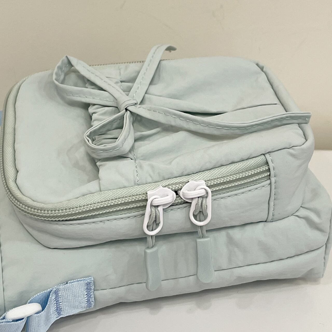 可愛いリボンデザインと実用性を兼ね備えたショルダーバッグ。コンパクトに見えて収納力抜群で、スマホ・財布・水筒など公園やちょっとしたお出かけに必要なものがしっかり入ります。軽量で斜め掛けできるから両手が空き、子どもと一緒の外出にもぴったり。フェミニンな雰囲気を残しつつ、ママに嬉しい機能性を備えた万能バッグです。