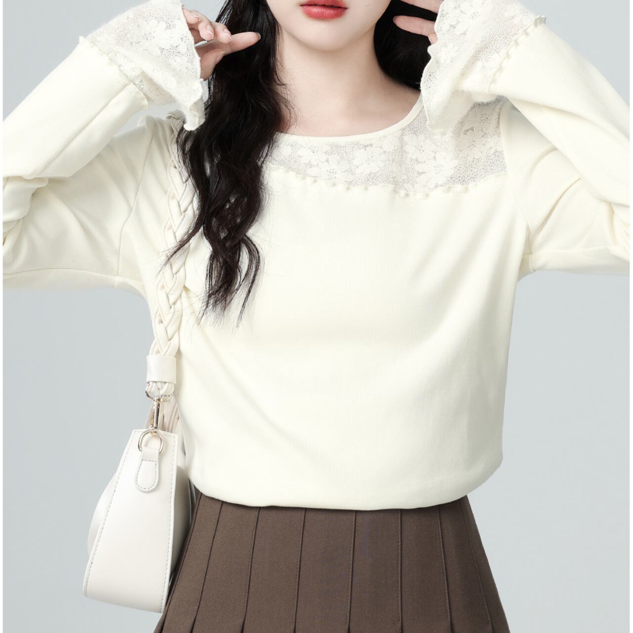 Lace Detail Flare Sleeve Blouse R0246