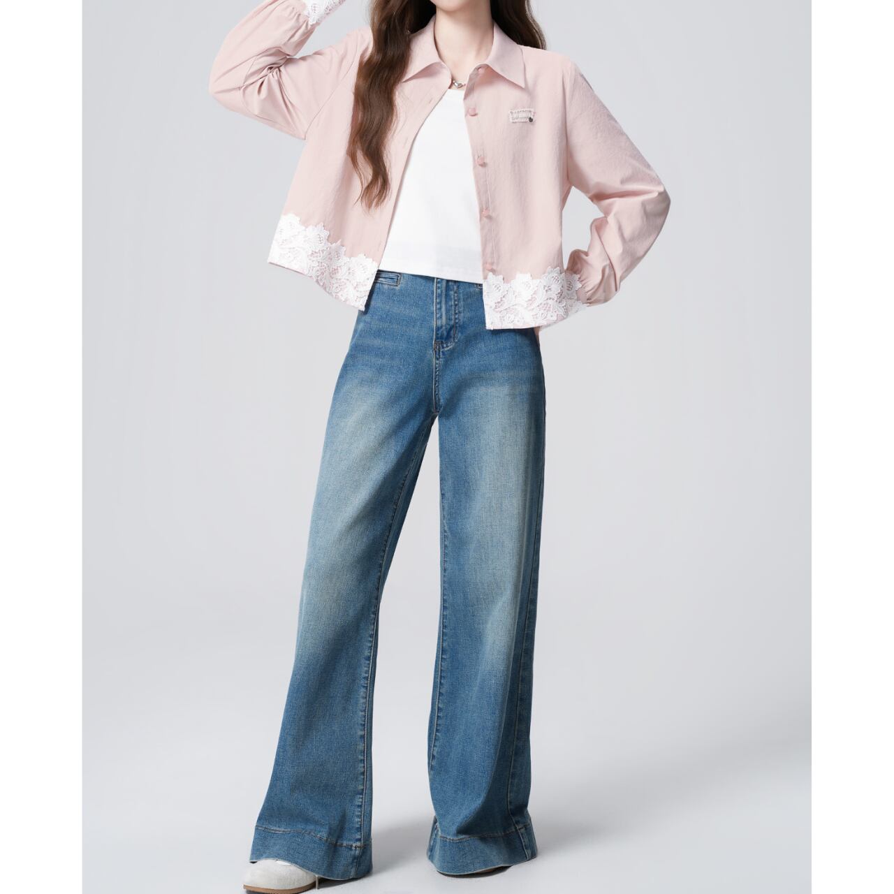 軽い素材感で季節の変わり目にも羽織りやすく、デニム合わせで甘すぎない大人可愛い印象に。