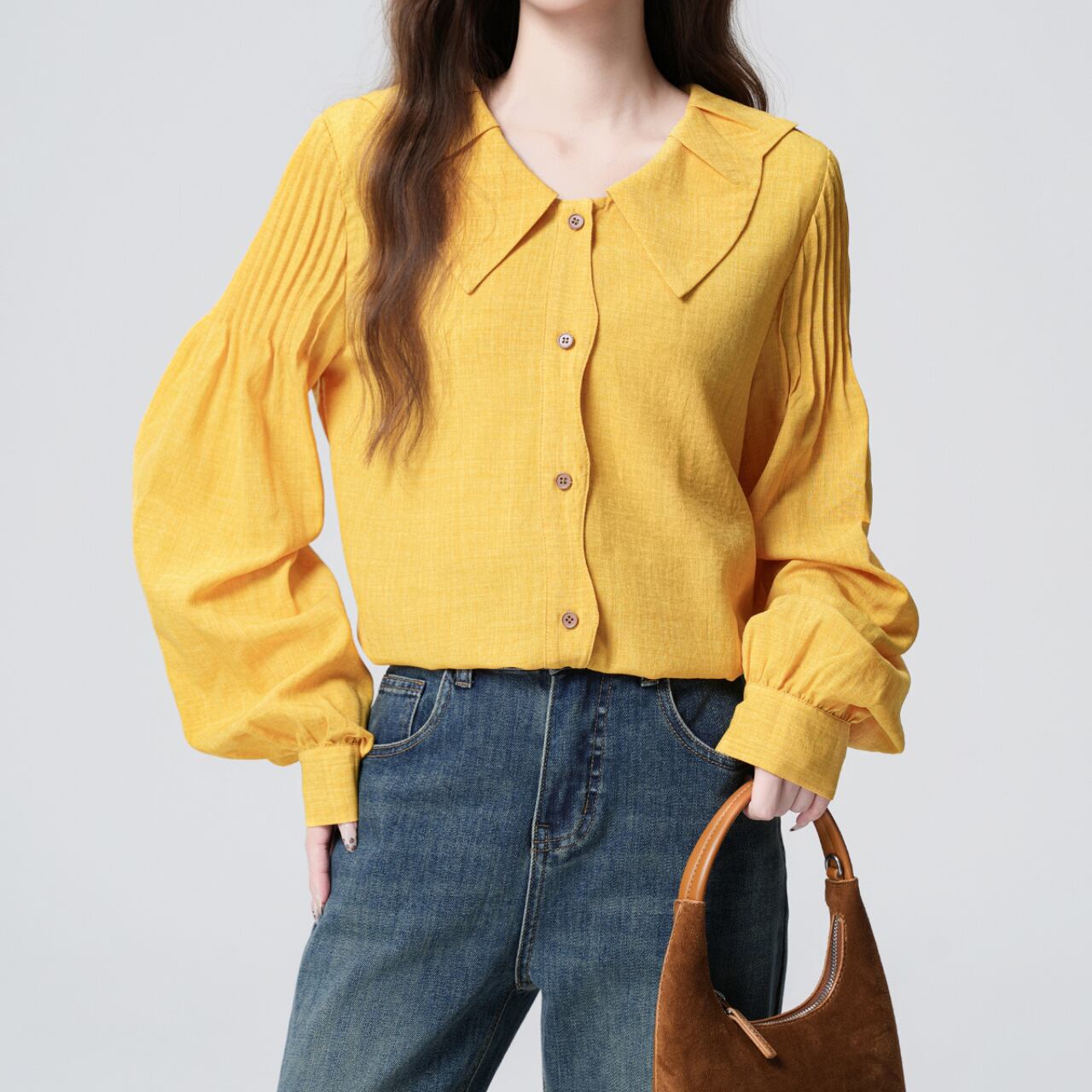 春の陽だまりのような優しいカラーが、毎日のコーデに華を添える一枚です。