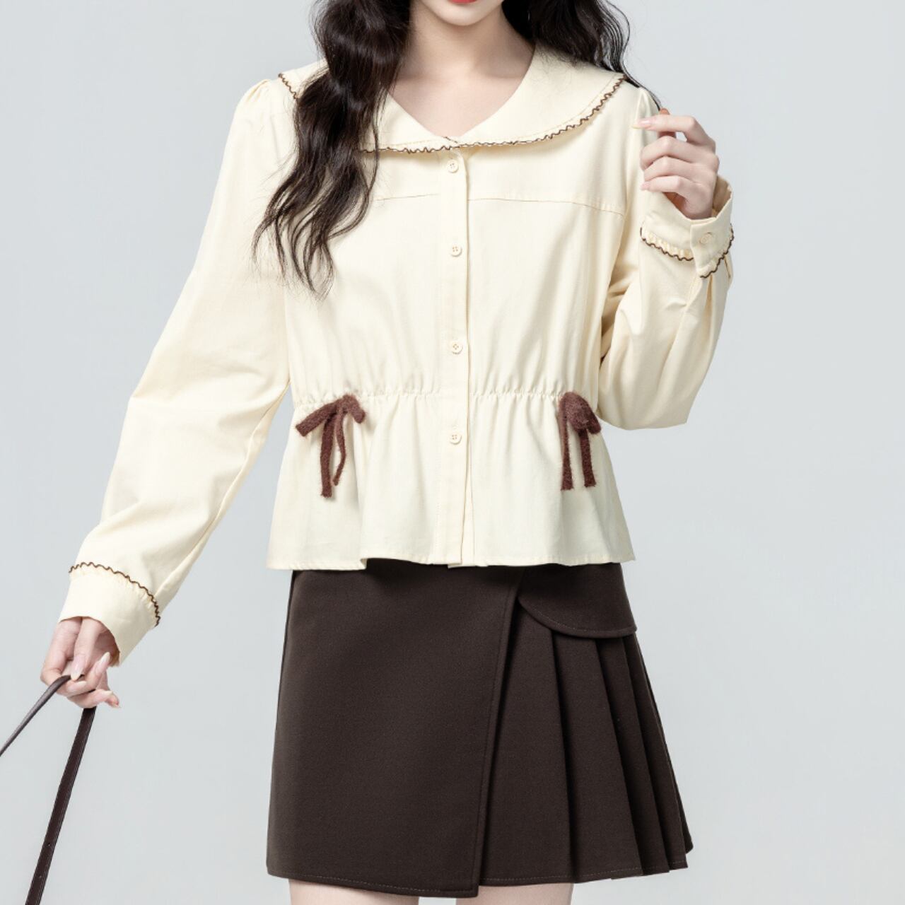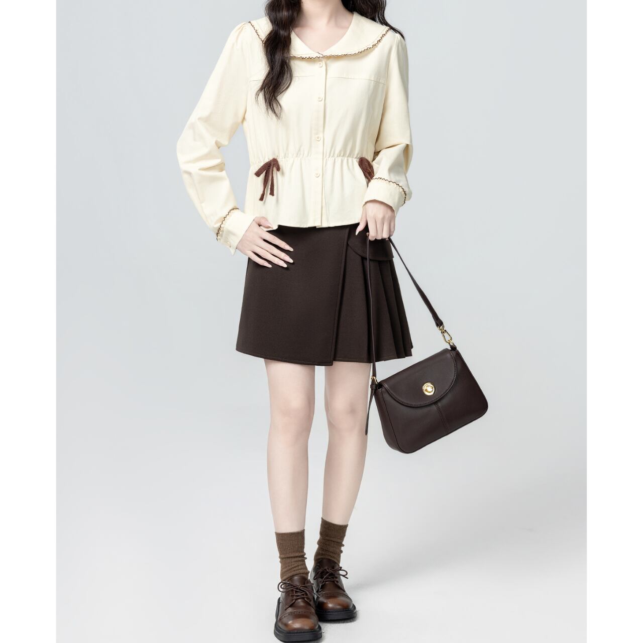 甘すぎず上品にまとまるデザインなので、スカートにもパンツにも合わせやすい一枚です。